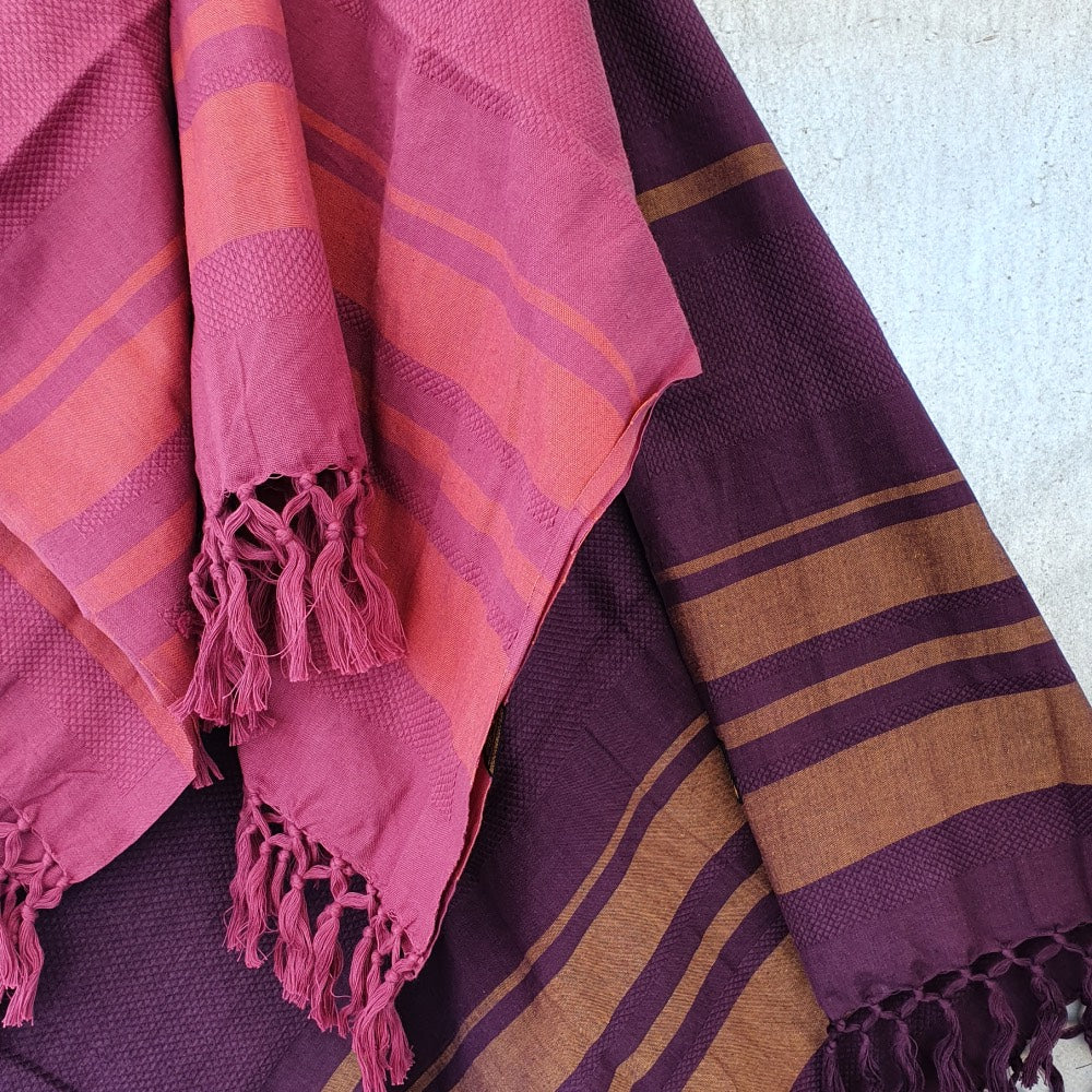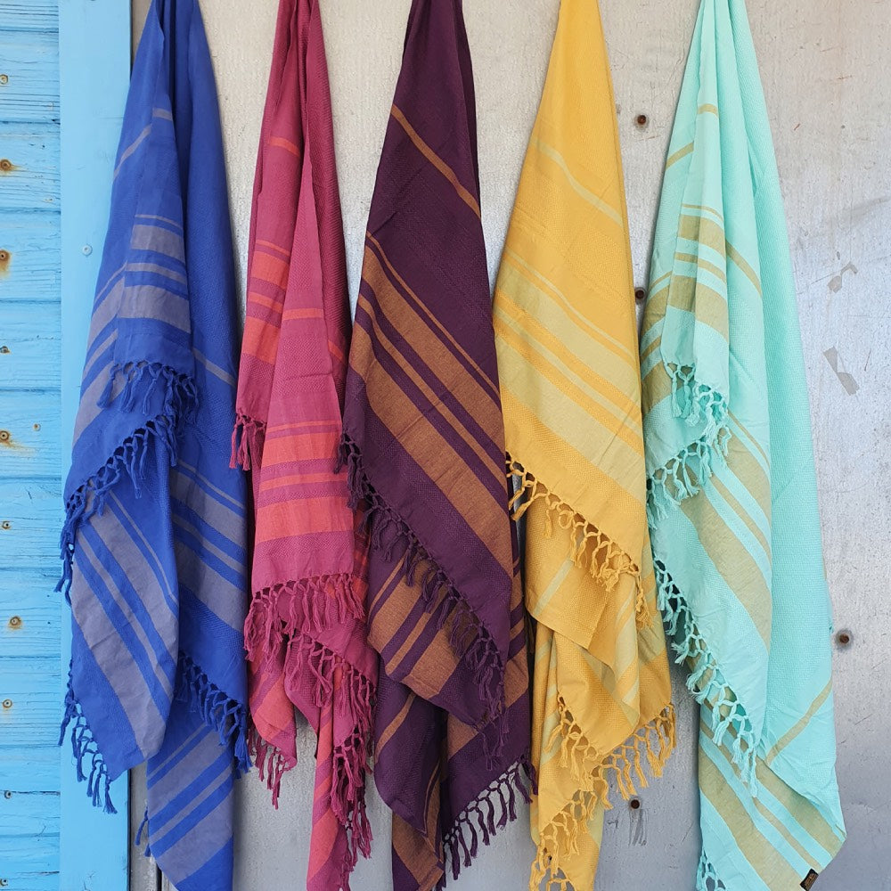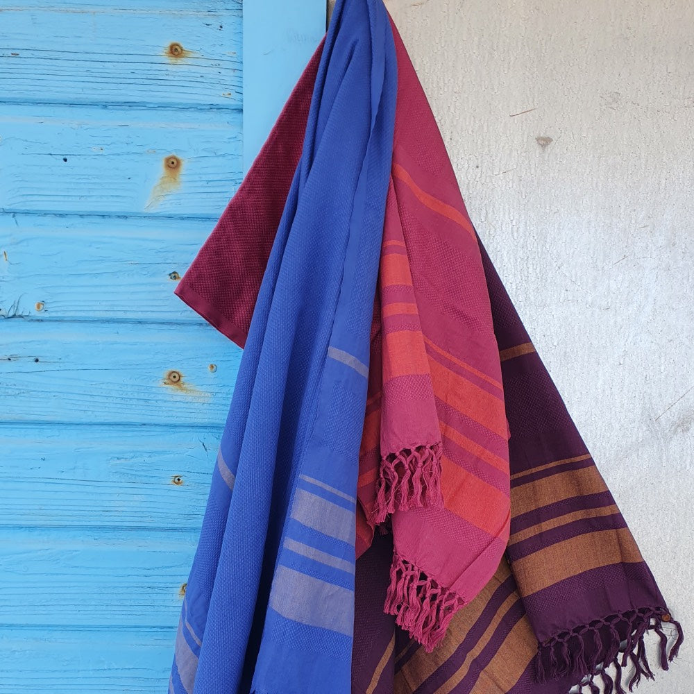 Dieses Hamamtuch / Fouta / Strandtuch wird im indischen Tamil Nadu im Handweber-Familienbetrieb vom Herrn Visu unter Fairtrade-Bedingungen handgewebt. Der Betrieb erfüllt Sozialstandards wie Gesundheit und Sicherheit am Arbeitsplatz, Verbot von Kinderarbeit und geregelte Arbeitszeit mit Überstundenausgleich.
