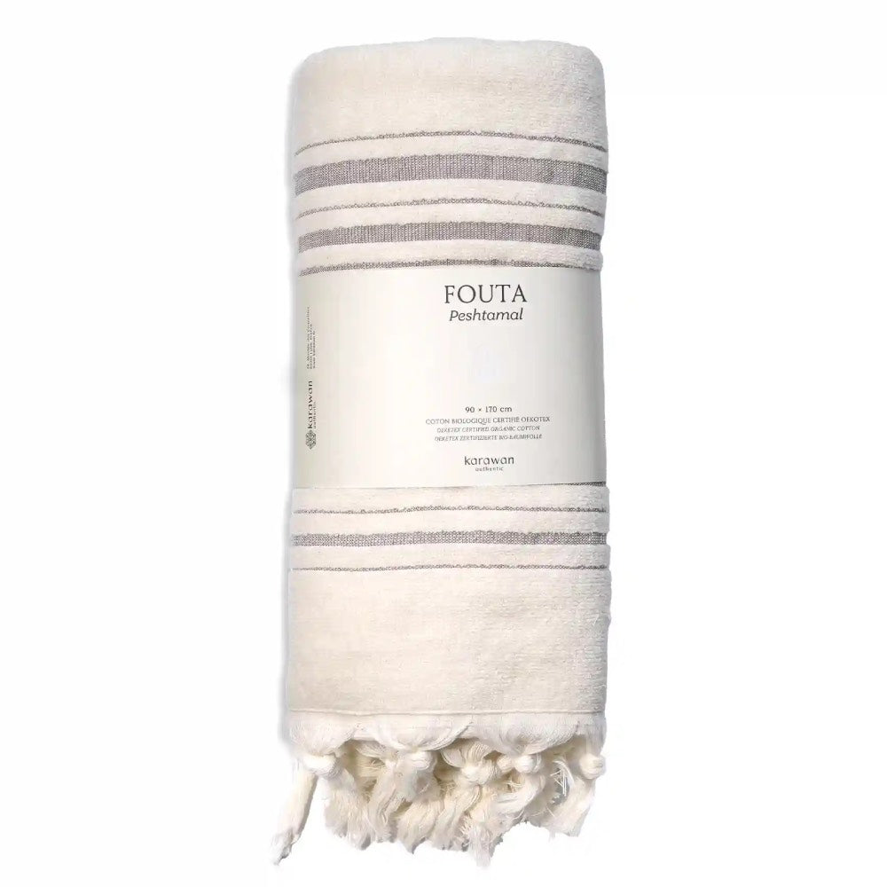 Die in der Türkei Peştemal – altpersisch „Tuch für den Rücken“ – genannten Foutas entstammen der Jahrtausende alten Badetradition. Der traditionellen Webart mit Schussfaden und Kettfaden wurde eine dritte Garnart hinzugefügt, um Schlaufen auf dem Stoff zu bilden und ihn damit saugfähiger zu machen.